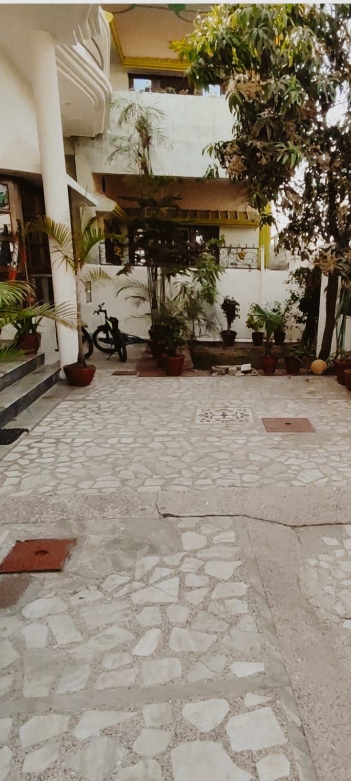 There is small Garden with Trees. Separate Servant Room and Toilet. 2 Balconies and large Portico. Cars Parking both inside and outside Bungalow.